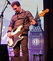 The visuals at this venue really do add to the show. Sometimes just WILLIE NILE in big letters like an autograph, but more often, swirling, colored images that matched the theme of the song. Not flashing lights that would be annoying but pretty lights that added to the excitement of the music, and sometimes specific images that matched the song's content -- during the final song of the night, there was Johnny Pisano standing next to London's Big Ben, because the song was a cover of "Hard Day's Night" by The Beatles!