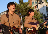 As soon as the four lads tore into the opening joyful notes of "She Loves You," a few dozen folks abandoned their lawn chairs and spent the next ninety minutes on the open area of pavement in front of the band, dancing to those tunes they'd loved for sixty years. I'm glad they were having so much fun, but they were entirely, completely blocking the view for the majority of the concert goers, who were sitting on chairs out on the lawn (and it was a pretty big crowd, too). No stage; everything was on the same level. The crowd never got even a glimpse of the four Beatles impersonators. The only people who saw anything at all were the ones who were sitting behind the band. And Studio Two - The Beatles Tribute are a very visual band. These four lads have done a great job with the clothing and the stage gestures, as well as using the vintage instruments that John, Paul, George, and Ringo were known for.