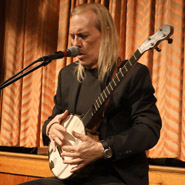 We've seen Mark in several different types of venues. Our introduction to him was doing relatively short half-hour sets opening a couple of times for the late David Lindley. We've seen him do a similar show as this, with a historical component included, at the Eastham Library and other folk venues. We've also seen him play a longer show where he's been mostly background music at a brewery (last year at the Harper Lane Brewery, Middleborough, MA), where because of the type of environment he didn't talk very much, but for those who came to hear him play, it was delightfully musically dense.